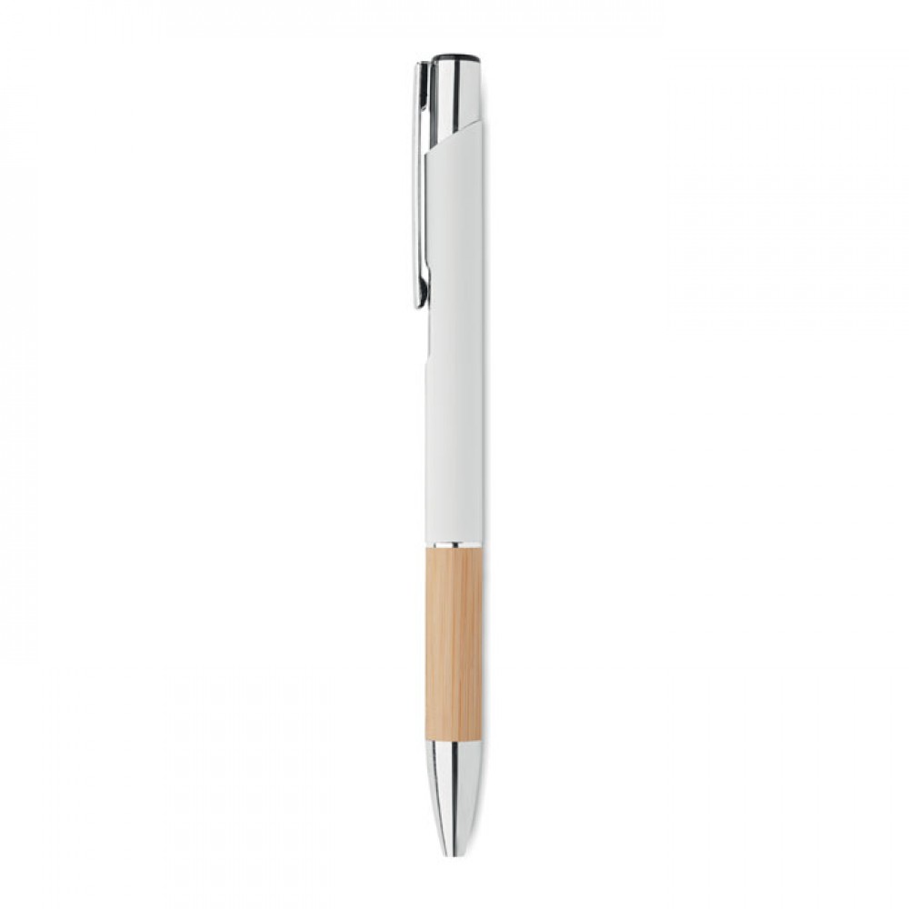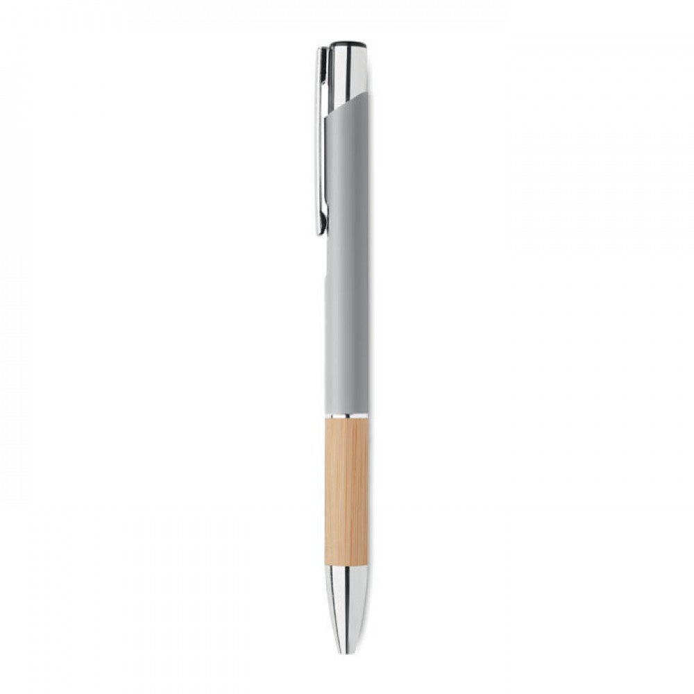 Περιγραφή:Push button pen in aluminium finish. Blue ink.