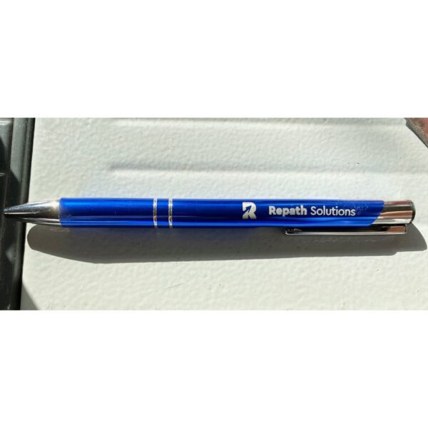 Περιγραφή:Push button pen in aluminium finish. Blue ink.
