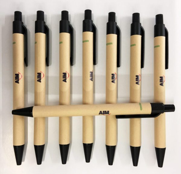 Περιγραφή:Push button ball pen in biodegradable corn plastic (53%) and recycled carton barrel. Blue ink.