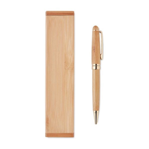 Gift set with twist ball pen in bamboo box. Blue ink. Κωδ.09912-345 Bamboo is a natural product, there may be slight variations in colour and size per item, which can affect the final decoration outcome.